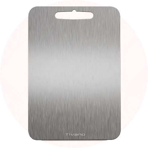 Das Tivano besteht aus porenfreiem Titan, das Bakterien keine Chance lässt und kein Mikroplastik abgibt. Im Gegensatz zu Holz oder Plastik ist es unzerstörbar, verfärbt nicht, nimmt keine Gerüche an und schont deine Messerklingen aktiv.
